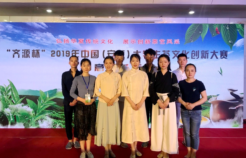 5月24-26日,由安徽省教育厅主办,安徽大学、安徽农业大学、安徽科技学院承办,安徽省茶文化研究会、安徽省茶叶行业协会、安徽省金寨县洪甸六安瓜片专业合作社协办的“齐源杯”2019年中国(安徽)大学生茶文化创新大赛在安徽科技学院凤阳校区举行。beat365在线平台官网茶学院专业教师池水婧、专职辅导员梁玉洁与7名参赛学生参加了大赛。