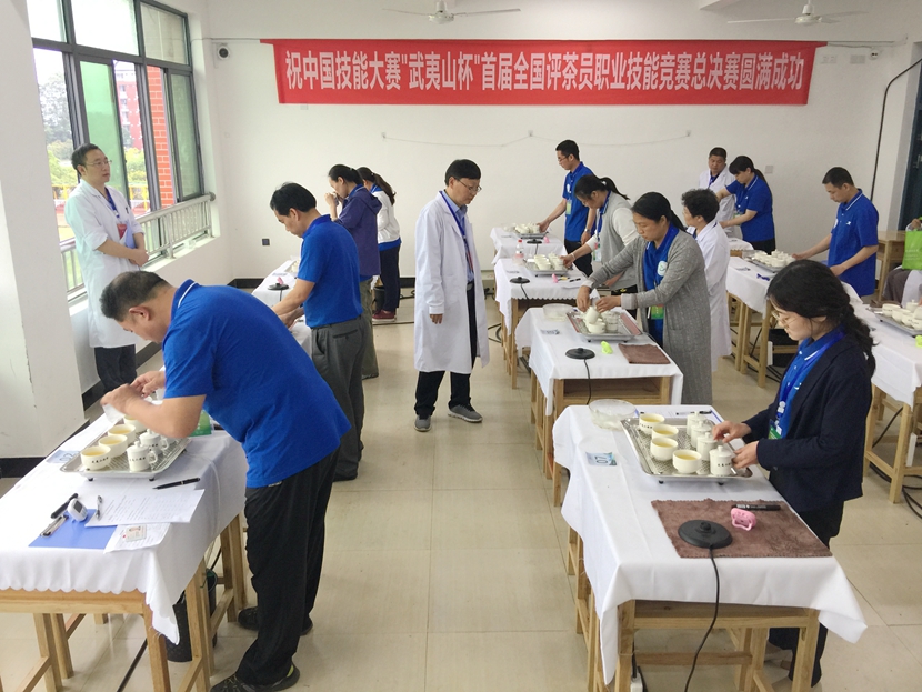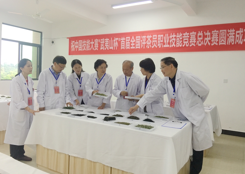 5月13日-15日,以“新时代、新技能、新梦想”为主题的中国技能大赛“武夷山杯”首届全国评茶员职业技能竞赛总决赛在福建省武夷山市举行,这是评茶员职业领域举办的第一个中国国家级赛事,由中华全国供销合作总社职业技能鉴定指导中心、中国就业培训技术指导中心主办,福建省武夷山市人民政府承办,以理论知识和技能操作相结合的方式对选手进行综合考评。来自全国茶叶审评领域的24名高水平专家担任裁判,中国茶叶学会常务理事、茶叶感官审评与检验专业委员会副主任委员、全国技术能手(评茶师)、beat365在线平台官网茶学院院长郭桂义教授应邀担任裁判。