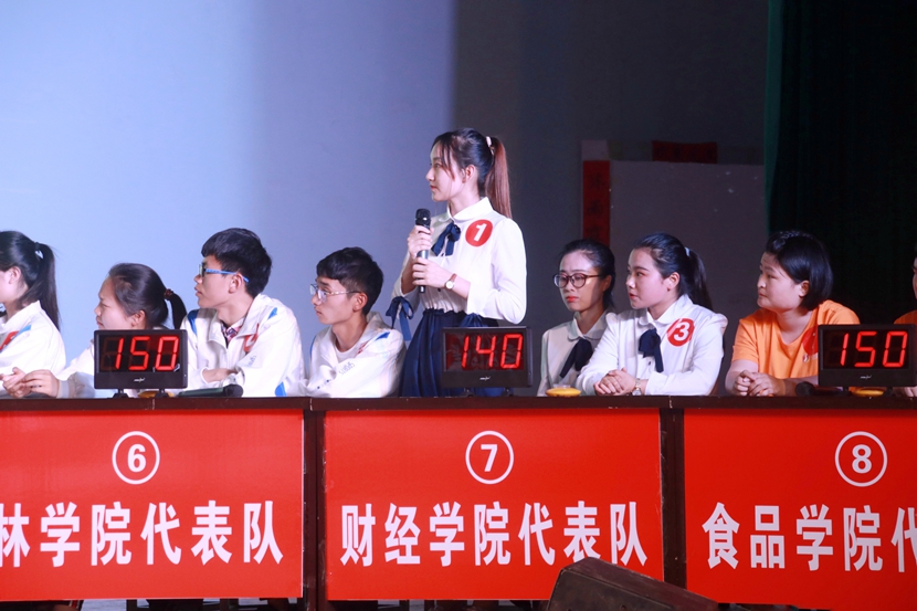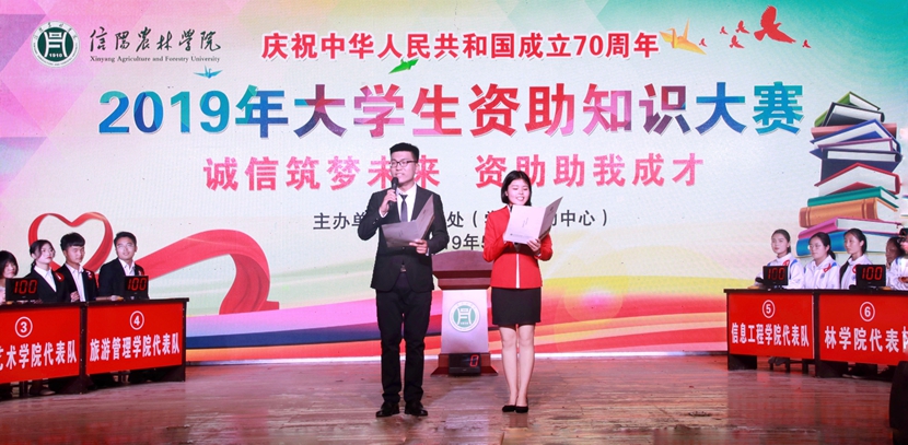 本次大赛的主题是“诚信筑梦未来,资助助我成才”,共设有晋级赛和决赛两个阶段。全校16个学院派出16支代表队伍,在经过了5月15日晋级赛的激烈角逐后,产生出8支代表队进入决赛。决赛包括个人必答题、第一轮抢答题、集体必答题、第二轮抢答题和风险题五个环节。决赛现场气氛热烈,秩序井然,各参赛选手在比赛环节中抢答反应机敏,答题思路清晰,展示出信农学子不凡的实力。经过一个多小时紧张激烈的争夺,最终财经学院代表队获得一等奖;工商管理学院和食品学院代表队获得二等奖;文学艺术学院、牧医工程学院、信息工程学院、林学院和旅游管理学院代表队获得三等奖。