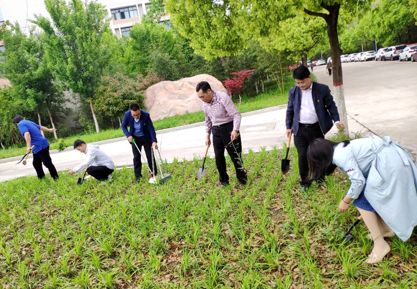 4月23日下午,后勤管理处党支部在图书馆门前及停车场周边开展了“爱绿·护绿”主题党日活动。副校长文宗锋参加了此次活动。