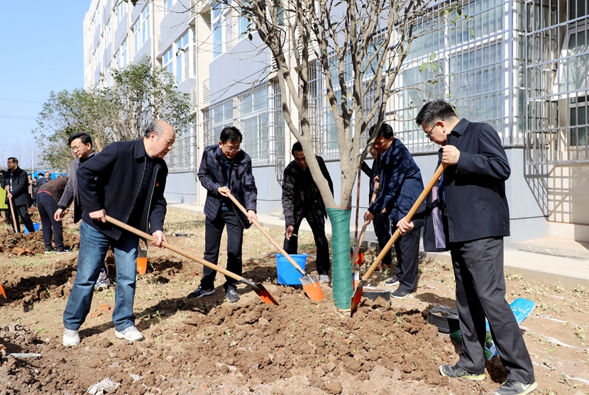 阳春三月,草木秀润。为进一步提高全校的绿化意识和文明素质,打造绿色学习环境,构建和谐文化校园,3月12日上午,党委书记余作斌,校长郭长华,党委副书记刘光生,副校长赵一鹏、胡虹文、文宗锋、黄松,工会主席黄遵东,各部门负责同志以及教师志愿者在19、20号学生公寓之间绿化区域参加了义务植树活动。