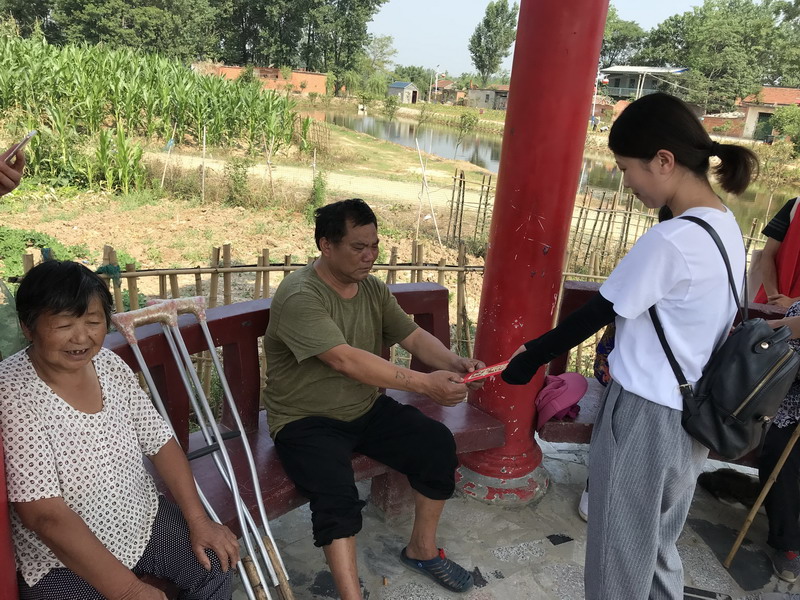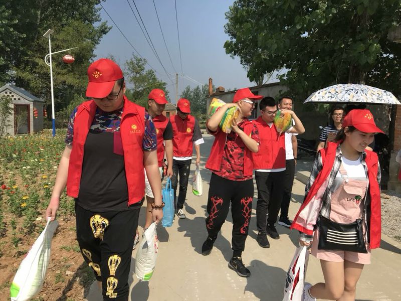 为进一步深入学习贯彻习近平新时代中国特色社会主义思想和党的十九大精神,扎实开展“我与中原共出彩”主题实践活动,6月14日,在端午节来临之际,工商管理学院教职工志愿者服务队葛晖、霍玉璨等老师带领学生党员、入党积极分子,到明港镇王寨村走访慰问困难户献爱心,送温暖。