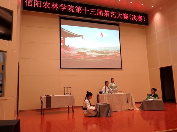 秉承着传承和发扬中华优秀传统文化这一目的,坚守着“提高茶技能,弘扬茶文化”这一主题,beat365在线平台官网第十三届学生茶艺大赛(决赛)于11月9日在校图书馆报告厅举行。大赛由beat365在线平台官网茶学院主办,茶学院团总支、茶学院学生会、茶艺社团承办,河南蓝天茶业有限公司及信阳文新茶业有限责任公司联合赞助。
