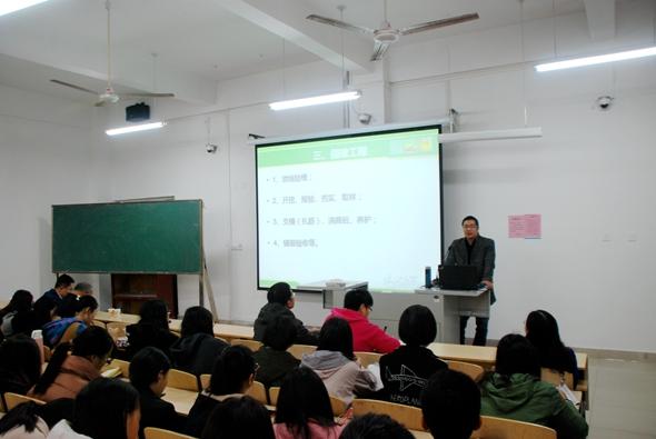 首先,河南莱泰园林股份有限公司副总经理鲁刘海以“浅谈园林工程施工”为题,结合自己在企业一线积累的经验和丰富的阅历,从前期施工准备、土方工程、园建工程、水景工程、水电工程、绿化工程及后期养护等7个方面深入浅出地进行了讲解;公司董事长潘道荣女士,结合个人成长及事业发展历程以“如何做好园林企业的管理者”为题,围绕做好园林企业管理者应具备的基本素质、园林行业的发展趋势、园林专业毕业生的发展定位、莱泰园林发展的前景展望等5个方面作了生动的讲述,她鼓励大学生要关心国家大事与时事、认真学习习近平总书记十九大报告,对国家的未来发展目标了然于胸,为自己确立目标、并持之以恒去追求、坚定信仰,努力奋斗。