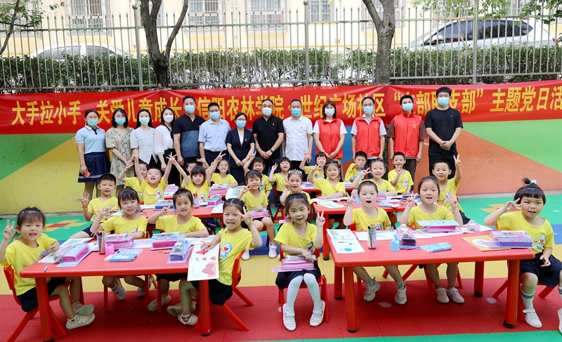 为学习贯彻习近平总书记在庆祝中国共产主义青年团成立100周年大会上的重要讲话精神,落实市委“支部联支部”活动相关要求,深化beat365在线平台官网基层党支部与结对社区党支部的紧密联系,以党建带团建、团建促党建,6月7日上午,在机关党总支的筹划安排下,团委党支部、国有资产管理处党支部与平桥世纪广场社区党支部一同前往平桥区雨润佳禾幼儿园开展“支部联支部 大手拉小手”关爱儿童成长主题党日活动。