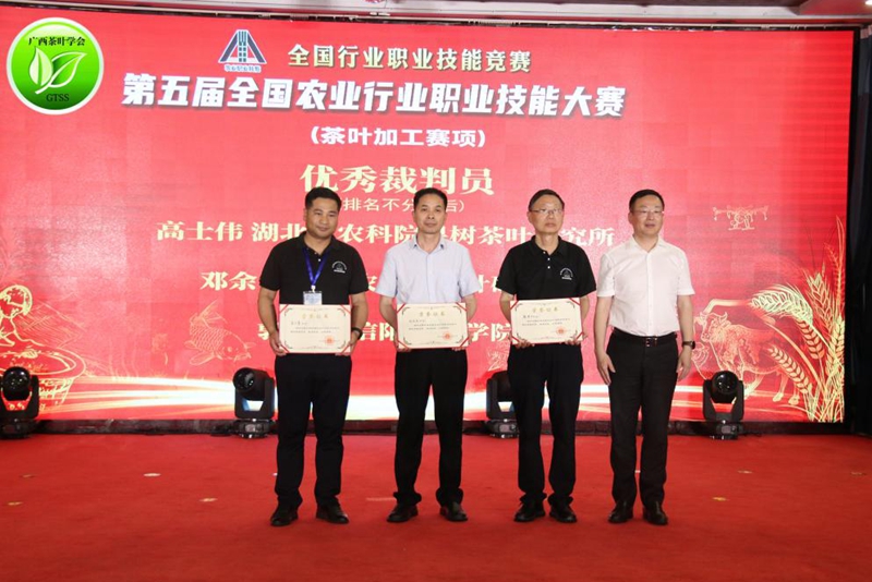 5月26日-28日,第五届全国农业行业职业技能大赛茶叶加工赛项决赛在广西柳州三江侗族自治县开举行。大赛以绿茶为主题,通过理论知识考试、茶叶拼配考核、现场烘炒青茶加工等项目竞技演绎工匠风采,共有来自全国17个省份的71名优秀茶叶加工制作选手参加。茶学院院长郭桂义教授应邀担任大赛裁判,并获得“优秀裁判员”荣誉称号。