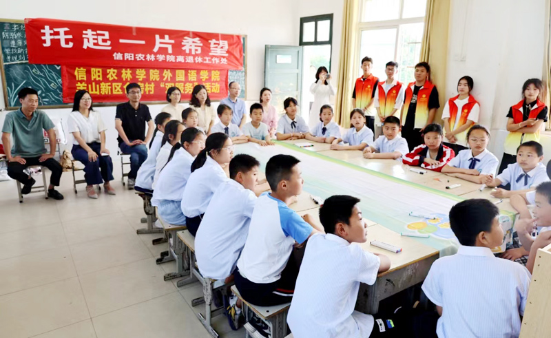 为进一步丰富乡村少年儿童的精神文化生活,传承优秀文化,在六一儿童节到来之际,beat365在线平台官网关工委联合外国语学院于5月31日上午赴羊山新区仓房小学,深入落实“双服务”系列活动,共同举办了“不管多大·快乐最大”主题实践活动。党委副书记、学校关工委主任王万玲,外国语学院师生和关工委办公室工作人员参加活动。