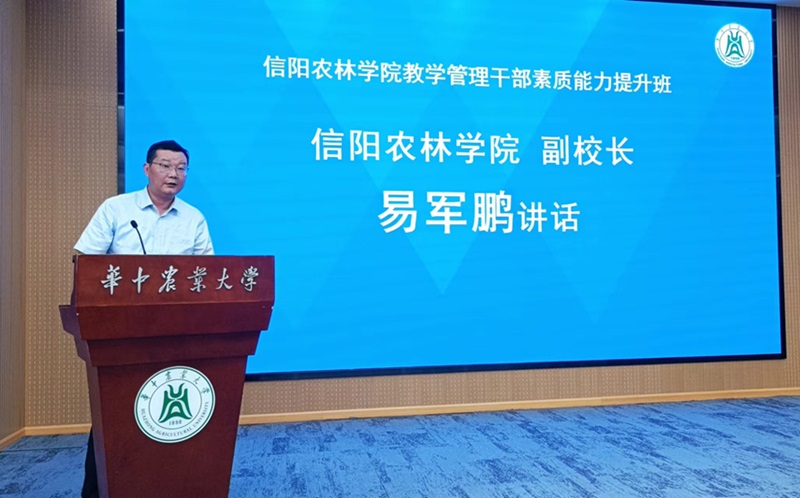 7月26日上午教学管理干部素质能力提升培训班开班。校党委委员、副校长易军鹏要求参训人员端正学风,从政治高度认识培训的重要性;学以致用,以实干担当提升培训的实效性;严明纪律,用严实要求强化培训的严肃性,学有所悟,学有所得,真正做到以学促干建新功。华中农业大学教育培训学院院长郑杰致辞,并为培训班授旗。