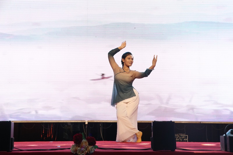 晚会分为“逐梦信农,扬新帆”“青春飞扬,展新颜”“盛世华章,绘新篇”三个篇章,节目涵盖了舞狮、街舞、古典舞、茶艺表演、独唱歌曲、原创歌曲、合唱歌曲等多种形式。整台晚会创意新颖,气氛热烈,精彩绝伦,观众掌声雷动,激情与喜悦交织。气势磅礴的暖场表演《中华龙狮》拉开晚会的序幕,瞬间点燃了现场师生的热情,随后,街舞《无热血不青春》让师生感受到了青春的活力与激情。歌曲《强国一代有我在》唱出了新时代青年的责任与担当。古典舞《苏幕遮》则展现了古典之美与优雅韵味。晚会节目精彩纷呈,“唱响新时代”的《追寻》《今天是你的生日中国》《红旗飘飘》《我和我的祖国》等歌曲,抒发了对祖国的热爱与赞美之情。茶艺表演《茶香传承》展示了中华茶文化的源远流长。原创歌曲《信阳等你》诉说着对这片土地的深情。爵士舞《自由》彰显了青春的不羁与洒脱。在“新‘声’逐梦”节目中,新生代表们用歌声展现了他们的朝气蓬勃与对未来的憧憬。舞蹈《琵琶行》优美动人,歌曲《会开花的云》婉转悠扬。舞蹈《灯火里的中国》描绘出祖国的繁荣昌盛。最后,艺术团合唱团带来的《如愿》唱出了对美好生活的向往,更是将师生们的情感推向了高潮。