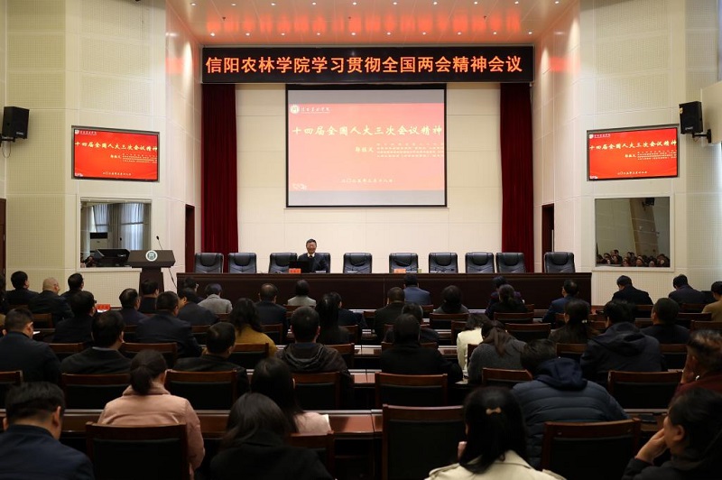 3月17日下午,郭桂义代表受邀在信阳师范大学外国语学院“五育大讲堂”上宣讲。学院师生200余人聆听了报告,会议指出,报告主题鲜明、内容丰富,重点突出、生动精彩,对学院师生准确把握好、深入贯彻好全国两会精神具有重要的指导作用。与会师生纷纷表示,将以实际行动贯彻落实全国两会精神,推动全国两会关于教育、科技、人才的重要部署在高校立德树人实践中落实见效,为实现学校高水平师范大学建设贡献智慧和力量。