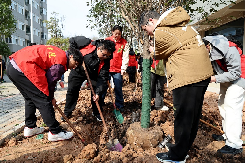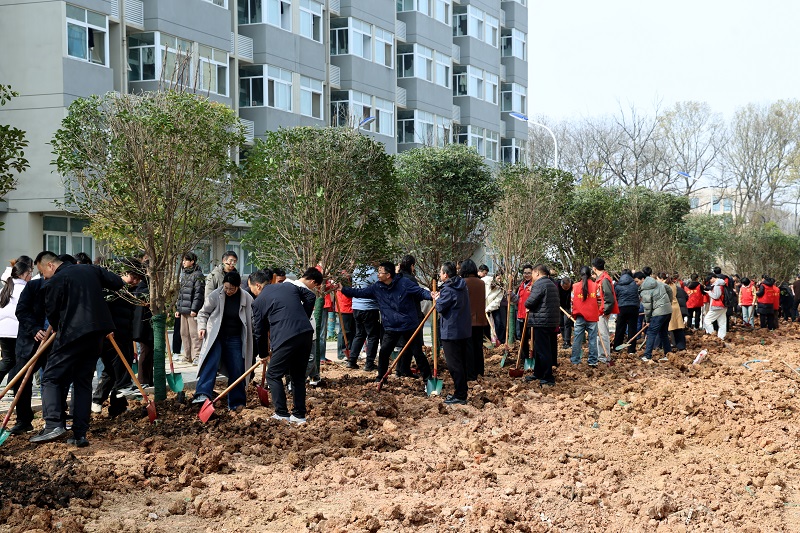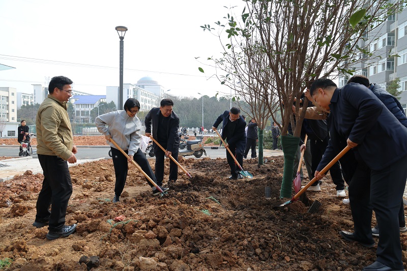 3月13日,beat365在线平台官网在校园内开展集中植树活动。校党委书记黄松与全体校领导、各相关部门负责人及师生代表齐聚新建29号公寓楼南侧绿化区域,共同参与植树劳动,以实际行动践行生态文明理念,厚植劳动育人情怀,为美丽校园再添新绿、再赋生机。