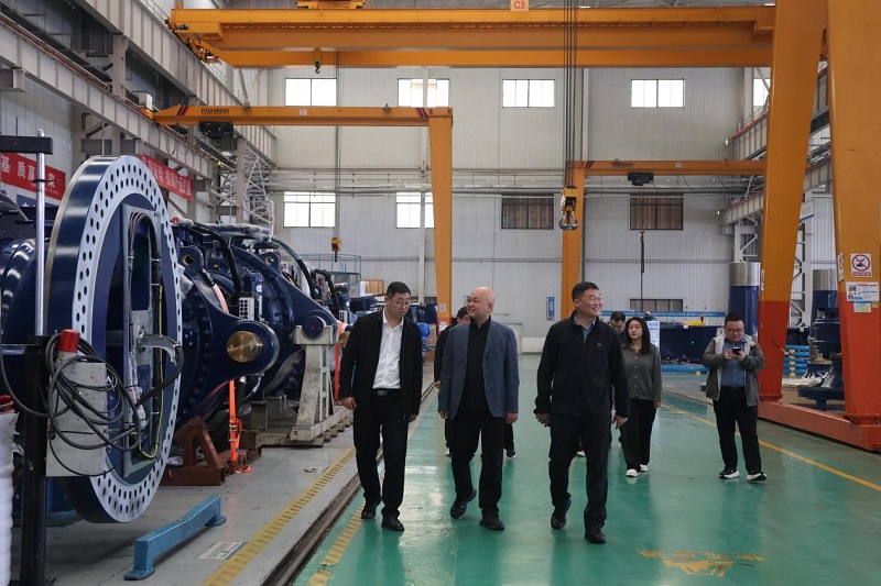在企业负责人陪同下,黄立一行走进生产车间、智能装备生产线、数字化管控中心实地参观。企业相关负责人现场详细讲解了风机整机装配流程、新能源设备智能制造工艺,重点介绍了生产环节中的大数据采集、设备智能控制、能源大数据分析等数字化应用场景,让学院一行直观了解企业生产运营现状、技术装备水平及数字化转型实际需求。