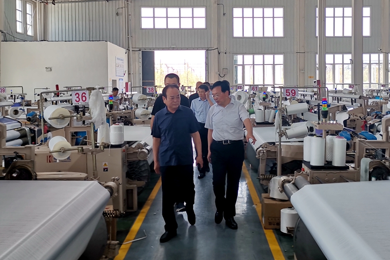 签约仪式结束后,邢勇一行实地考察了苏美达服装车间、中纺织造中心、信阳港淮滨中心港、五谷春酒业。