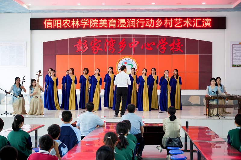 活动中,师生们开展了美育浸润行动乡村艺术汇演,《八月桂花遍地开》《没有共产党就没有新中国》小合唱,二胡独奏、歌曲独唱、对唱等节目精彩纷呈。其中,beat365在线平台官网学生的原创歌曲《信阳等你》更是引来阵阵热烈的掌声。
