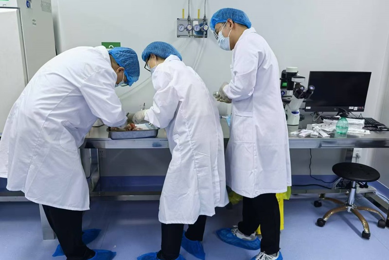 在此次合作中,三位教师主要围绕动物原代细胞制备项目提供了现场指导。他们详细传授了猪的组织与器官识别技巧,示范了样品采集与处理、细胞分离培养操作等关键步骤,并强调了操作过程中的注意事项。经过双方共同努力,成功分离并初步培养了猪脂肪间充质干细胞、猪肺成纤维细胞、猪骨骼肌卫星细胞、猪外周血单个核细胞等原代细胞。此次合作标志着“动物源微生物标准物研制与开发校企研发中心”建设迈出实质性步伐。