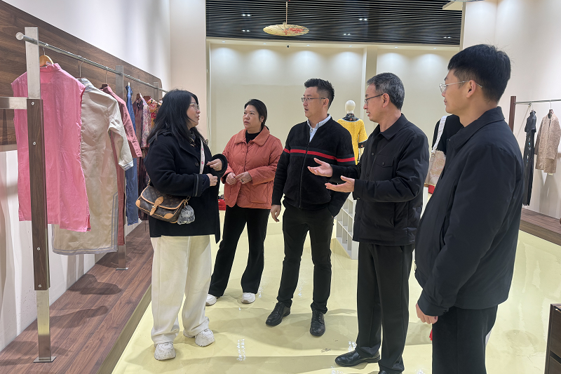 为促进本地企业间的资源共享与优势互补,10月25日下午,服务团同民宿主理人前往羿伟龙祥(河南)实业有限公司进行考察交流。三方共同观看了企业宣传片,深入了解企业概况。服务团进一步参观了鲁山绸的生产工艺流程,并详细了解了柞蚕丝绸文化博物馆的建设筹备情况。在此基础上,服务团积极推动民宿与丝绸产品企业间的合作商讨,探索“民宿+丝绸”主题体验、产品展销等联动模式,旨在拓展彼此的业务边界。