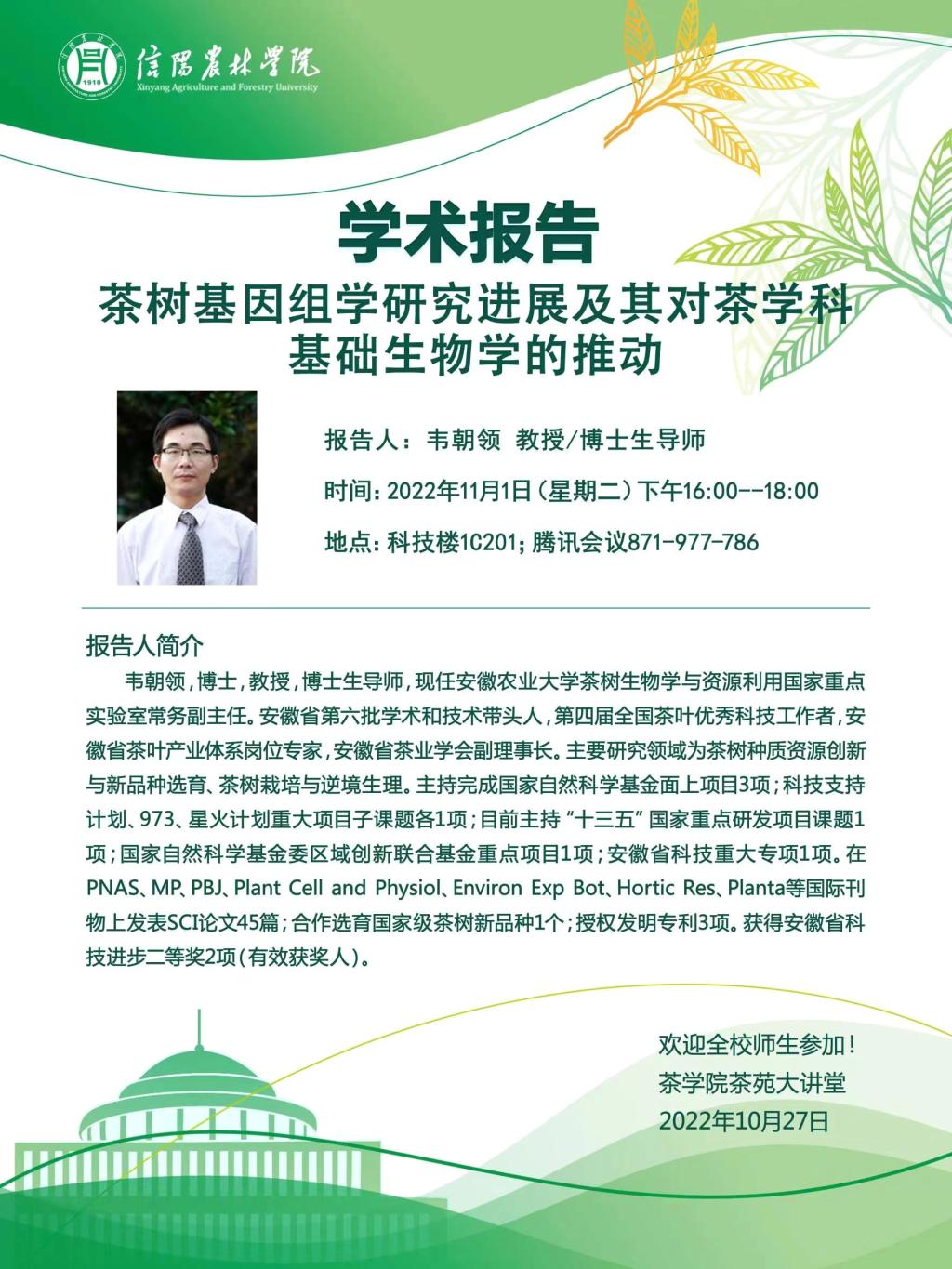 学术报告——茶树基因组学研究进展及其对茶学科基础生物学的推动