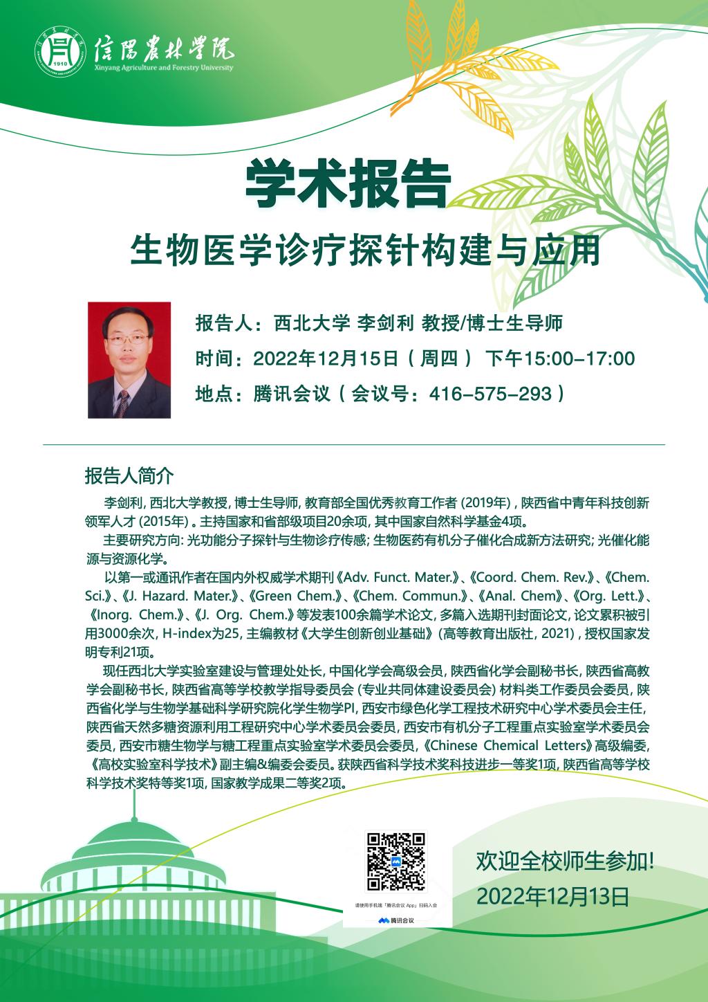 学术报告——生物医学诊疗探针构建与应用