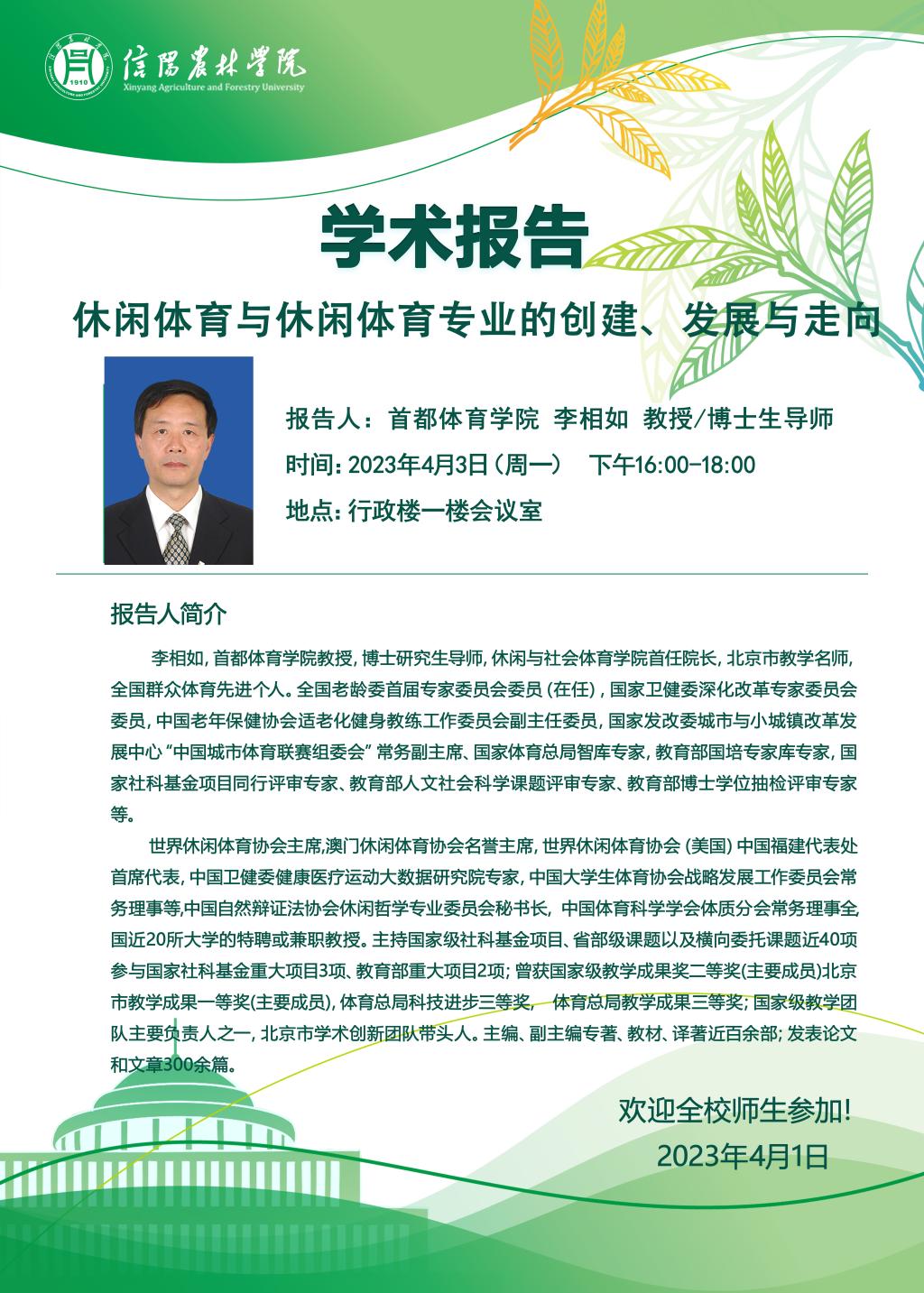 学术报告——休闲体育与休闲体育专业的创建、发展与走向