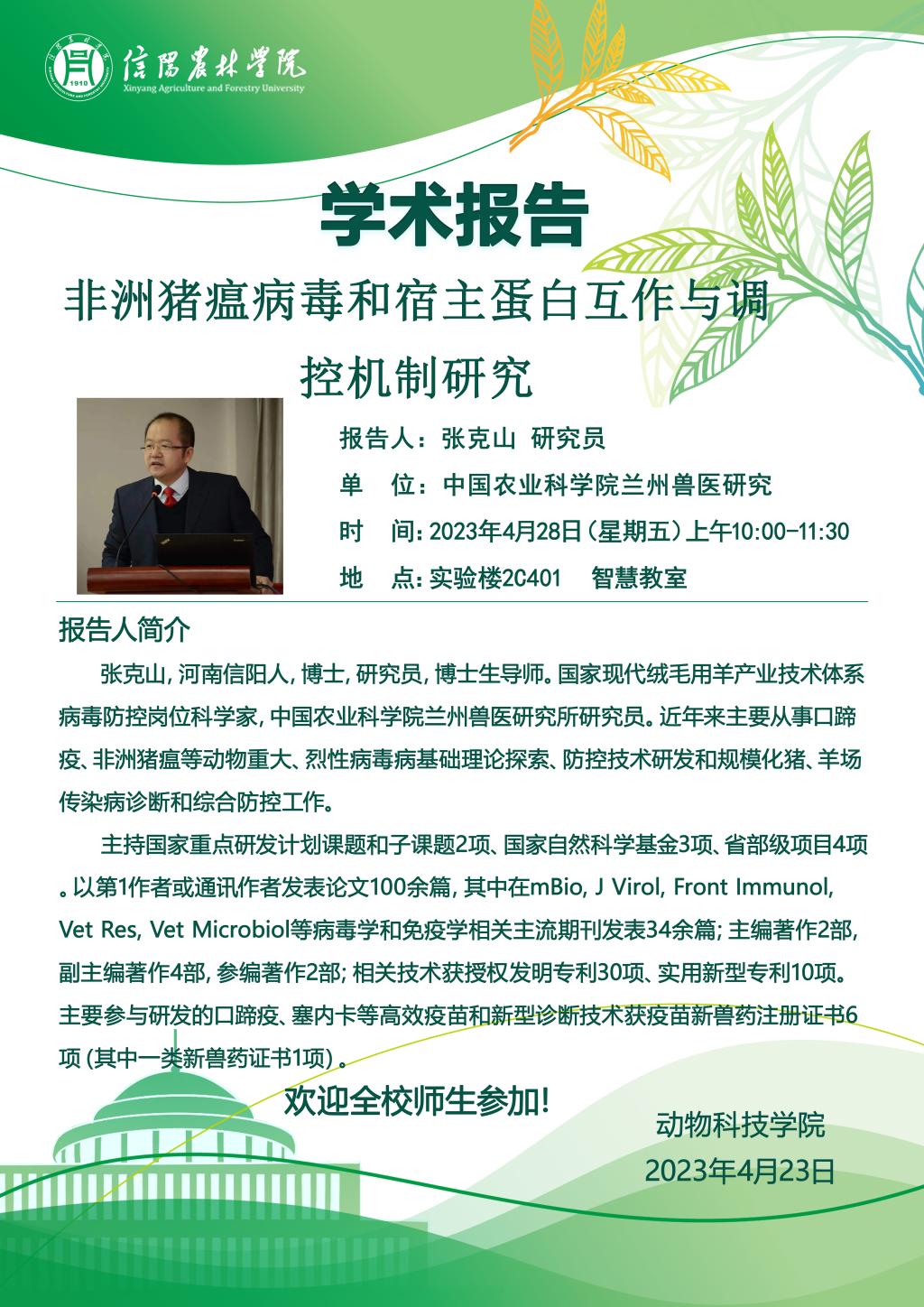 学术报告——非洲猪瘟病毒和宿主蛋白互作与调控机制研究