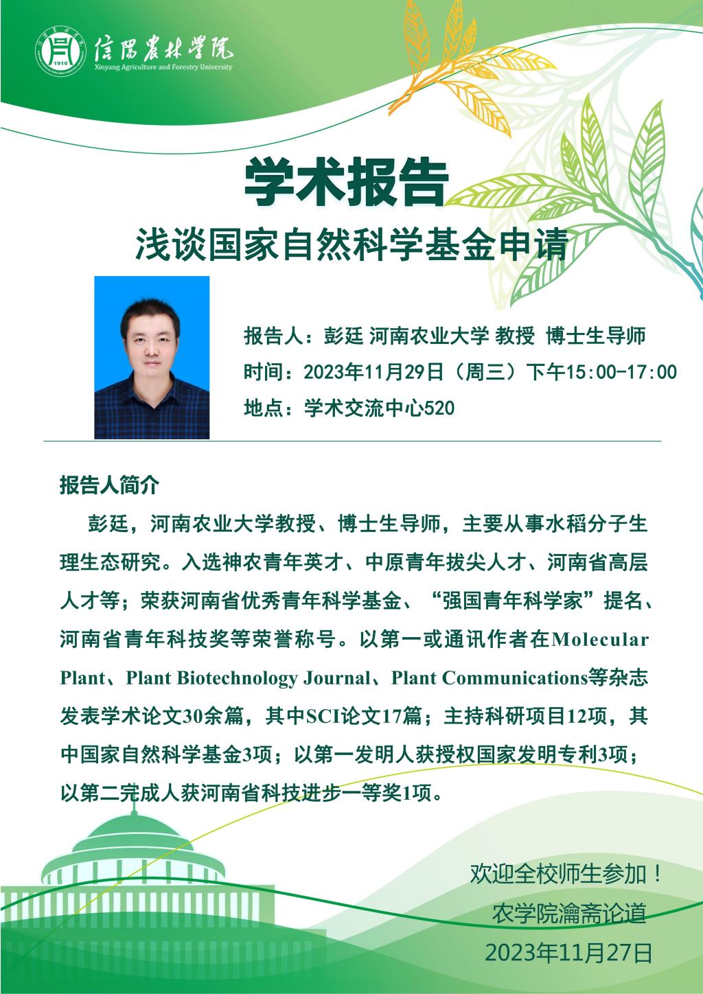 学术报告——浅谈国家自然科学基金申请