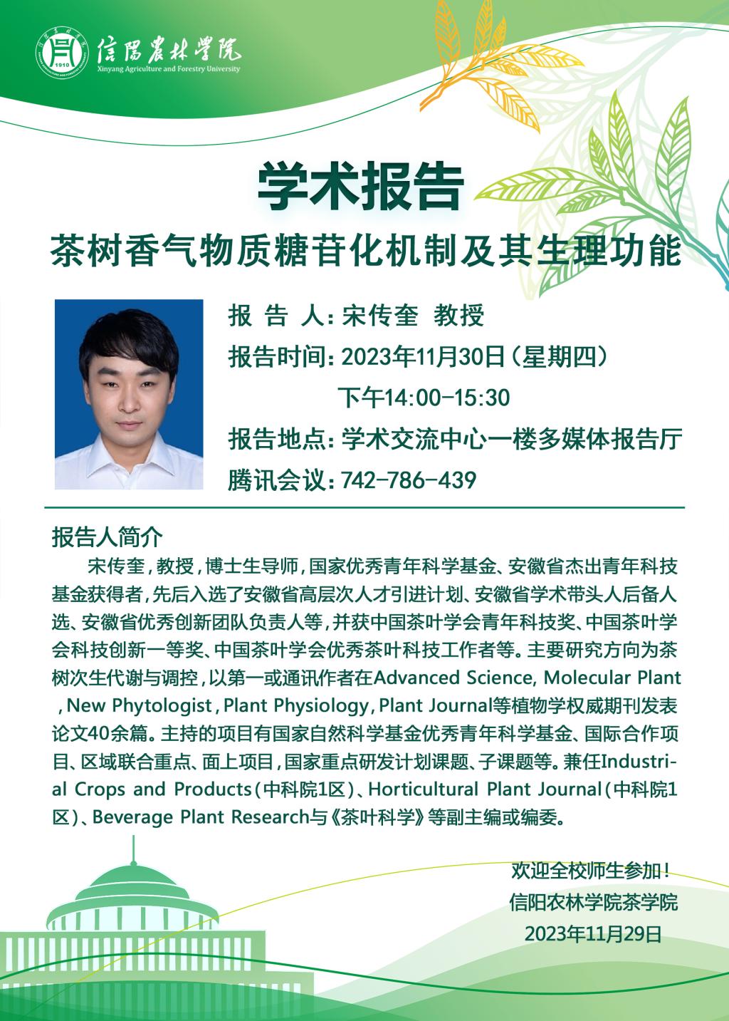 学术报告——茶树香气物质糖苷化机制及其生理功能