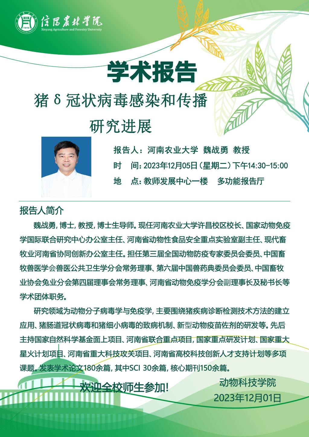 学术报告——猪δ冠状病毒感染和传播研究进展