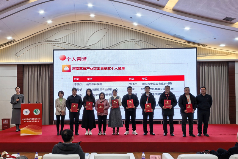 大会对长期致力于河南省草莓产业发展,并做出突出贡献的集体和个人进行表彰,beat365在线平台官网园艺学院被评选为“河南省草莓产业突出贡献先进集体”,李亮杰被评选为“河南省草莓产业突出贡献先进个人”。