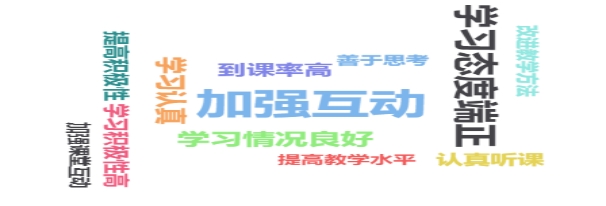 在提交的教学建议中,大部分教师希望提升课堂互动率,希望学生能更多的参与到课堂中,而不是教师个人满堂灌。这一点不仅需要教师增加课堂授课的技巧,还需要学生能够在课堂中发挥积极主动性。后期学校在不断加强教师技能培训的同时,授课教师也应自觉在线上线下,多学多练多磨课,通过在不同级别教学技能竞赛中锻炼提升。