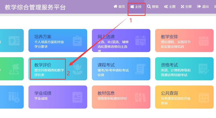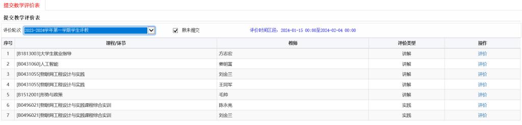 2023-2024学年第一学期学生评教工作于2024年1月15日-2024年1月28日24:00期间进行,请各学院安排学生按照如下流程进行操作。