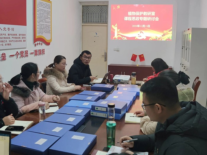 2020年12月15日,农学院植物保护教研室开展课程思政专题研讨会,会议由植物保护教研室主任王国君副教授主持,教研室全体成员参加。