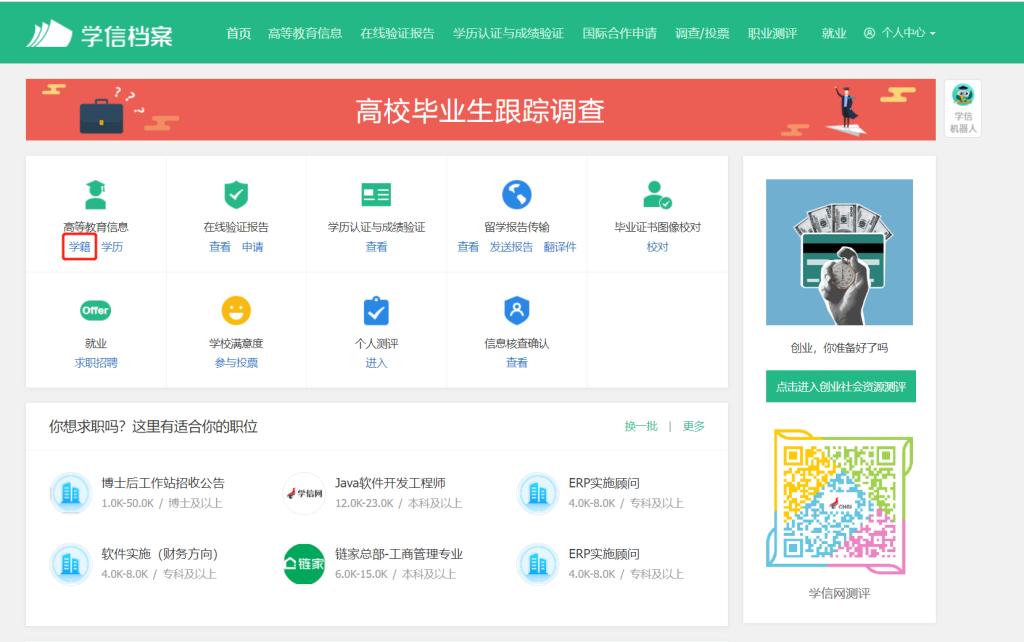 ①登录学信网APP,点击“学籍查询”,查看学籍学历信息