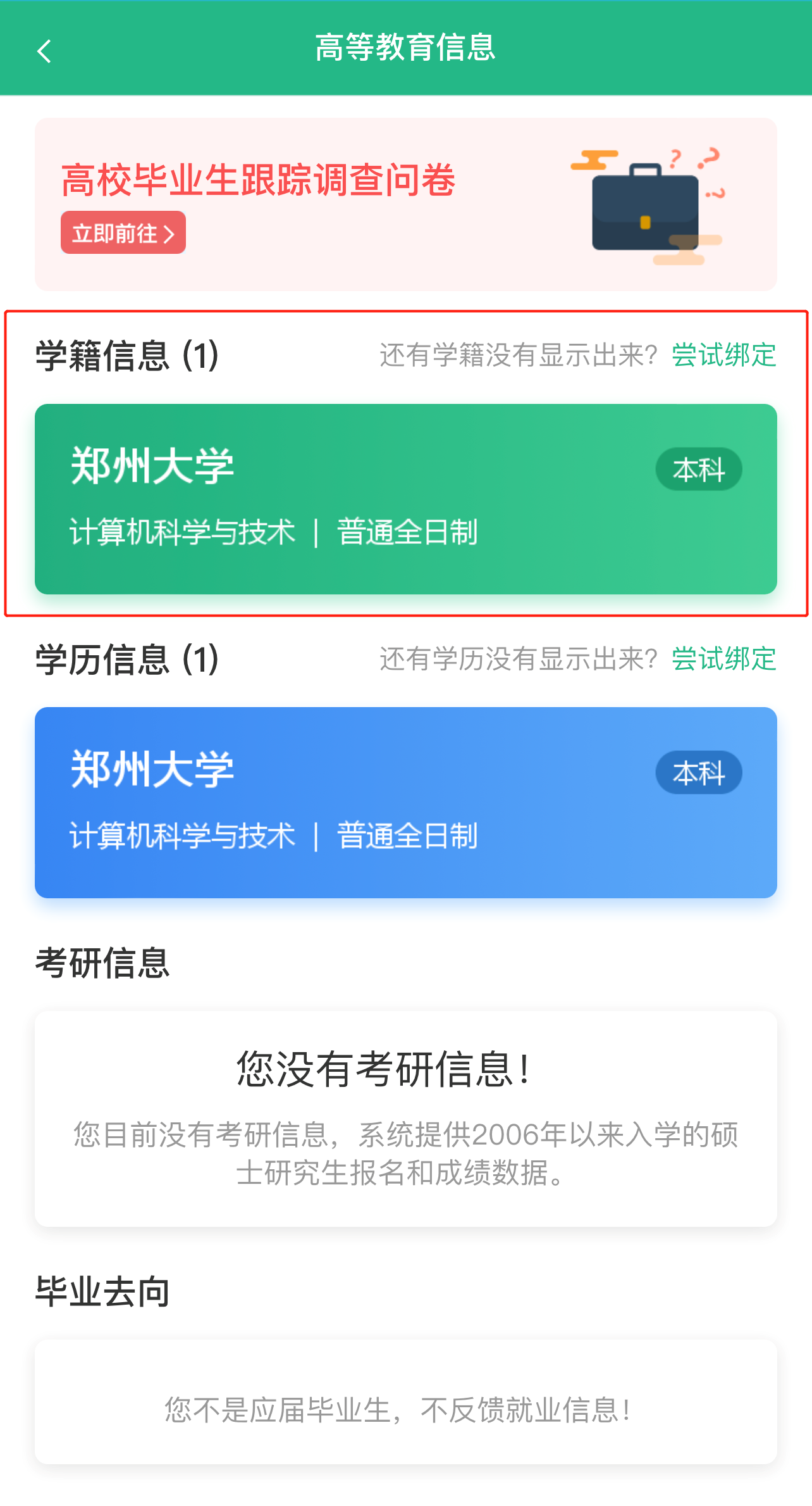②查看本人学籍信息