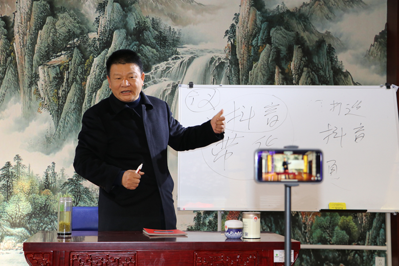 图为管仁宽讲授《一片羽毛托起乡村振兴路》
