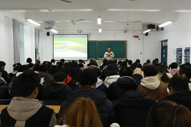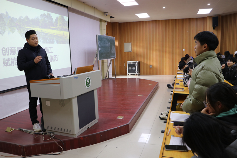 连日来,汪蕾、王金合、武森阳、张晨阳、张厚山、李华龙分别带来《创业项目选择及影响因素》《返乡创业筑梦田野》《老番茄变身乡村振兴“致富果”》《打造信阳大米品牌创新“稻”路》《供港澳蔬菜种植的农业品牌之路》《创意景观设计与施工赋能“美好生活看信阳”》精彩报告,他们以其丰富的创业经历为蓝本,从创业项目的选择及影响因素、创业过程中的思考与建议等多个维度进行了深入剖析,并通过大量真实生动的创业案例,向同学们展示了如何根据自身条件和市场趋势选择适合的创业项目,并详细介绍了创业项目的策划与实施过程。同时,报告还结合当前流行的互联网创业项目,如新媒体直播带货等,为同学们提供了宝贵的创业建议。