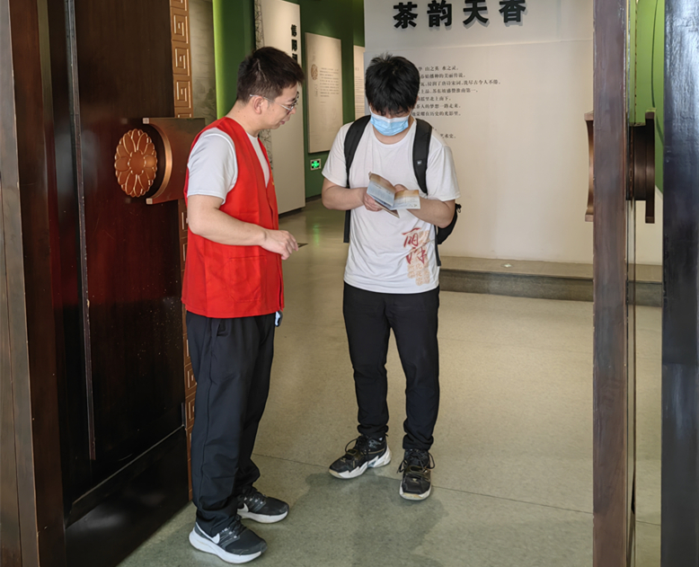 6月10日下午,继续教育学院党支部党员教师马骁与beat365在线平台官网首批教师志愿者服务队到信阳市博物馆参加首次志愿者活动。活动过程中,志愿者们耐心解答游客的各类问询,对于不清楚的问题,主动对接工作人员并及时反馈给游客;帮助游客找到并送达遗失的物品;为市民参观游览提供了方便,市民们对党员教师志愿者们连连称赞。