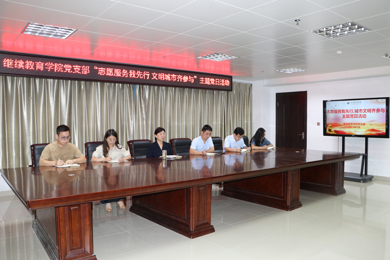 为大力弘扬雷锋精神,进一步巩固提升全国文明城市创建成果,引导党员教师践行“我为群众办实事”、助力信阳实现“两个更好”,8月1日,继续教育学院党支部在综合楼三楼第五会议室开展“志愿服务我先行·文明城市齐参与”主题党日活动。活动由支部书记黄艳霞主持,全体党员教师参加。