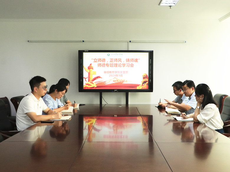 为深入贯彻落实党的二十届三中全会精神,进一步规范新时代教师履职履责行为,持续巩固学校师德师风建设成果,教育引导教师受警醒、明底线、知敬畏,坚持立德树人,共同遵守廉洁规范从教约定,营造风清气正的教育生态,继续教育学院于8月29日召开“立师德 正师风 铸师魂”2024年秋冬学期师德专题理论学习会议,继续教育学院党支部负责人岳宝华讲授“开学第一课”。