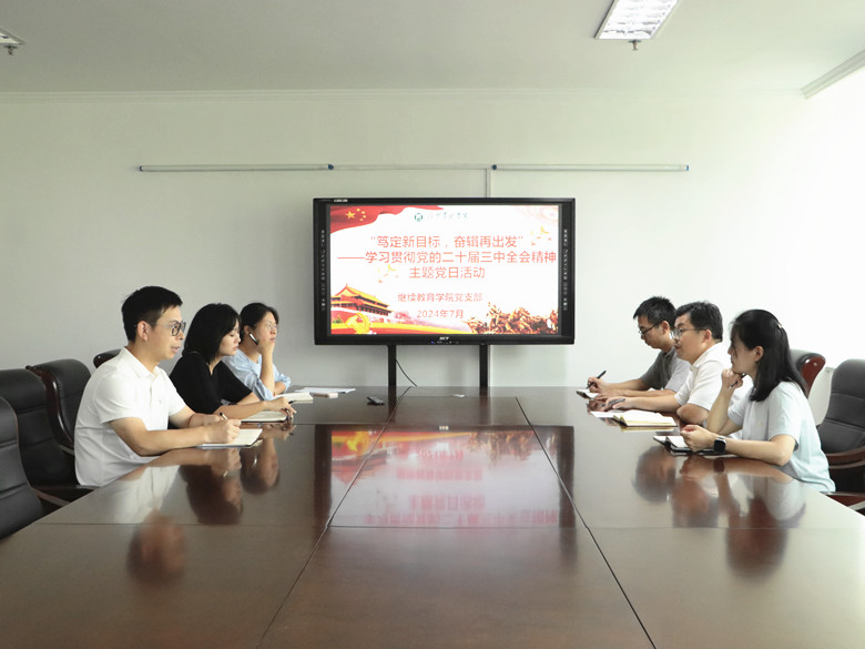 为深入学习贯彻二十届三中全会精神,2024年7月23日,继续教育学院党支部开展“笃定新目标,奋辑再出发”学习党的二十届三中全会精神主题党日活动,由继续教育学院党支部负责人岳宝华主持。