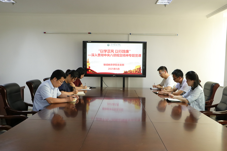 5月20日,机关继续教育学院党支部组织全体党员以讲党课的形式深入贯彻中央八项规定精神,提高党员干部认识,领会好精髓要义,为开展好学习教育打牢基础。
