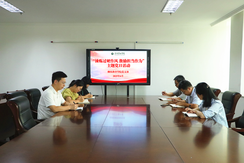 6月10日上午,继续教育学院党支部以“弘扬大别山精神 锤炼过硬作风 激励担当作为”为主题在综合楼320开展了主题党日活动。活动由党支部书记岳宝华同志主持,支部全体党员参加。