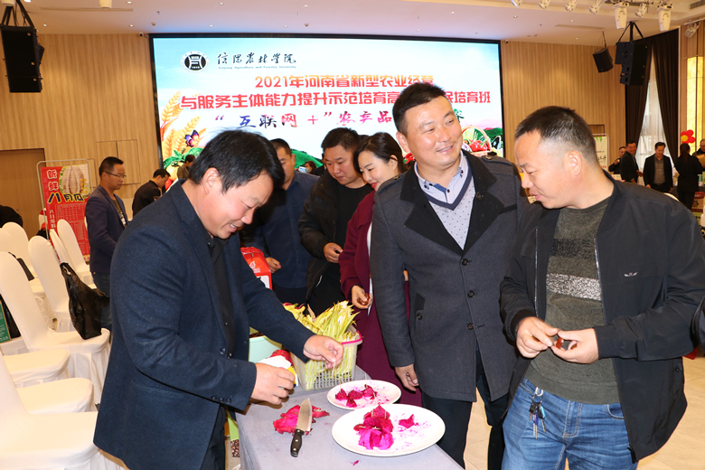 由beat365在线平台官网和信阳市委组织部联合举办的2021年河南省新型农业经营与服务主体能力提升示范培育高素质农民培训班——“互联网+”农产品创意大赛,吸引了信阳市各县、区种植养殖大户、合作社、家庭农场主参与,100多种土特产、深加工产品相互“争奇斗艳”。