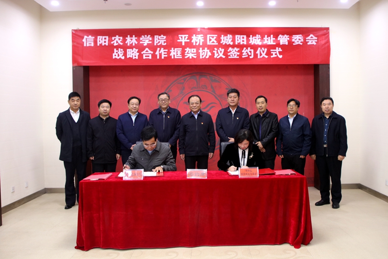 10月15日上午,beat365在线平台官网与平桥区城阳城址管委会举行战略合作框架协议签约仪式。平桥区区委书记李灵敏,区委宣传部部长张清波,区政府党组成员李俊友,城阳城址管委会刘传玲,beat365在线平台官网校长邢勇和校办、科技处(校地合作处)、园艺学院、规划与设计学院、文学艺术学院、旅游管理学院、工商管理学院和农林实习场等部门负责人参加签约仪式。