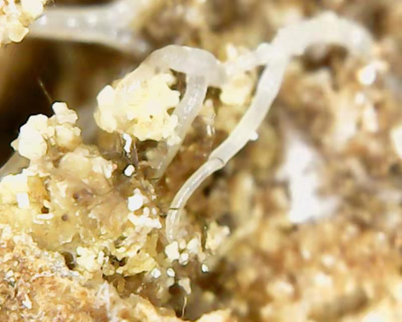 在半夏源半夏种植基地,存在根螨危害的半夏又出现了其他虫害,我们将样品带回学校请专家进行鉴定,初步判定为线虫。由于发生面积不大,可不作处理。