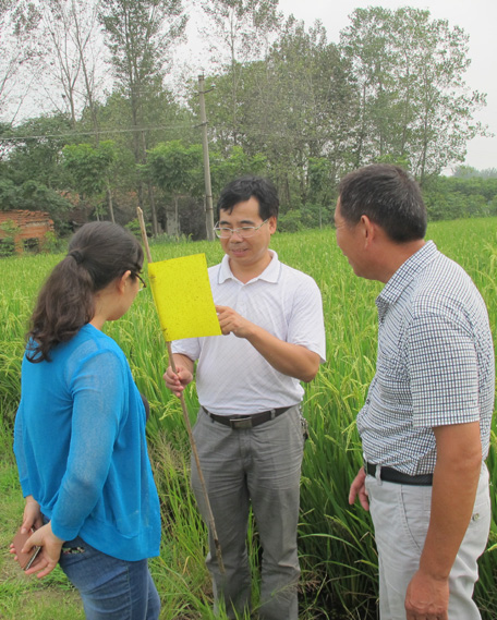 万开军一行三人在潢川县科技局和受援单位负责人陪同下,深入企业有机水稻栽培基地进行了现场指导,并就有机水稻发展前景、有机水稻栽培种植技术、病虫草害绿色防控技术和有机水稻认证标准等方面与企业负责人进行了深入的交流和探讨。