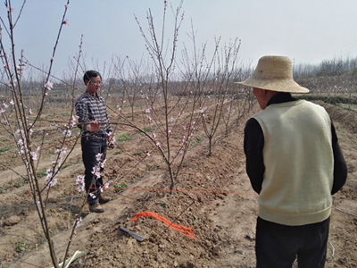生态园活动结束后,三位老师又来到中乐种养殖基地,观察了前期指导百亩桃园引进的各品种桃树生长情况。
