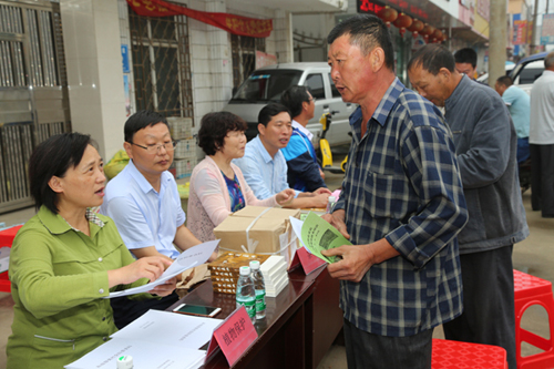为大力宣传科学技术在推动人类社会发展中的作用,提升公众对科技创新成果的认知度,营造讲科学、爱科学、学科学、用科学的浓厚氛围,促进全民科学素质提升,9月19日,副校长尹新明教授带领beat365在线平台官网科技处处长赵聘教授、茶学院院长郭桂义教授、牧医工程学院院长易本弛教授、赵云焕教授、林学院院长孙耀清教授、水产学院院长杨东辉副教授、园艺学院副院长范宏伟副教授、生物与制药工程学院副院长王德芝教授、农学院教学秘书陈利军副教授、食品学院刘泓老师及科技处何波、叶兆伟等13名专家教授赴固始县段集镇开展2017年全国科普日活动。