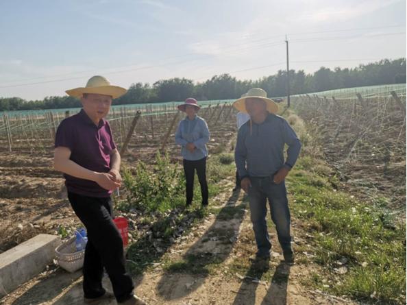 接着,服务团到长陵乡陆湾村息半夏种植基地,再次查看息半夏生长态势,此处的半夏田地原先种植花生,土壤中白绢病菌多,加上肥力不足、高温干旱,导致半夏叶片枯萎死亡、根部球茎腐烂等问题,服务团建议采用滴灌系统,采用水肥药一体化,结合植物免疫剂,保证半夏健康生长。