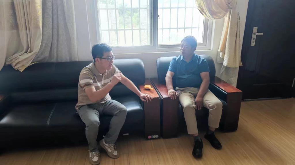 在合作社办公室,付满意与敬元种养殖农民专业合作社负责人王敬元进行了沟通与交流。王敬元首先介绍了合作社近期的基本生产现状,以及合作社当前栽培的主要经济作物油茶、苍术和黄桃的管护情况。在沟通中了解到,合作社当前在生产实践中面临着生产技术落后、养护管理科学性不足等诸多问题,尤其是当地主栽作物油茶,由于该合作社属于第一批引种油茶合作社,早期专业知识欠缺,加之管护不当,导致引进的油茶品种杂乱,产量低下,整体收益不高。后期虽也尝试引入一些高产油的油茶新品种,但因管养技术不够,导致成活率不高。在了解了当地生产情况以后,付满意表示下一步将有针对性的开展一系列技术帮扶指导,一是做好与油茶大省科研院校和机构的牵线搭桥,为合作社引入一批品种纯、适应强、产量高的油茶品种,并跟踪指导技术生产,做好品种替换与更新;二是将依托合作社开展新县本地野生油茶的调研、培育和生产推广试验,为地方油茶发展贡献力量;三是结合本人目前正在开展的花椒引种栽培科研项目,考虑合作社生产实际,逐步为其提供一些适生高产的花椒品种,指导其种植,进而提升合作社的综合生产能力,增加收益渠道。