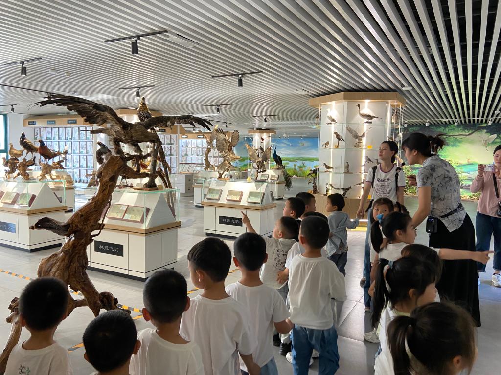 踏入标本馆,琳琅满目的动植物标本瞬间吸引了孩子们的目光。栩栩如生的动物标本从森林猛兽到灵动飞鸟,从深海游鱼到林间昆虫,仿佛将大自然的奇妙生态圈搬到了眼前。讲解员深入浅出地介绍着各类生物的特性、习性,孩子们时而投来惊叹的目光,时而踊跃提问,积极互动。小朋友们在轻松氛围中感受到自然生命的奥秘与神奇,开启了热爱自然科学的一扇大门。